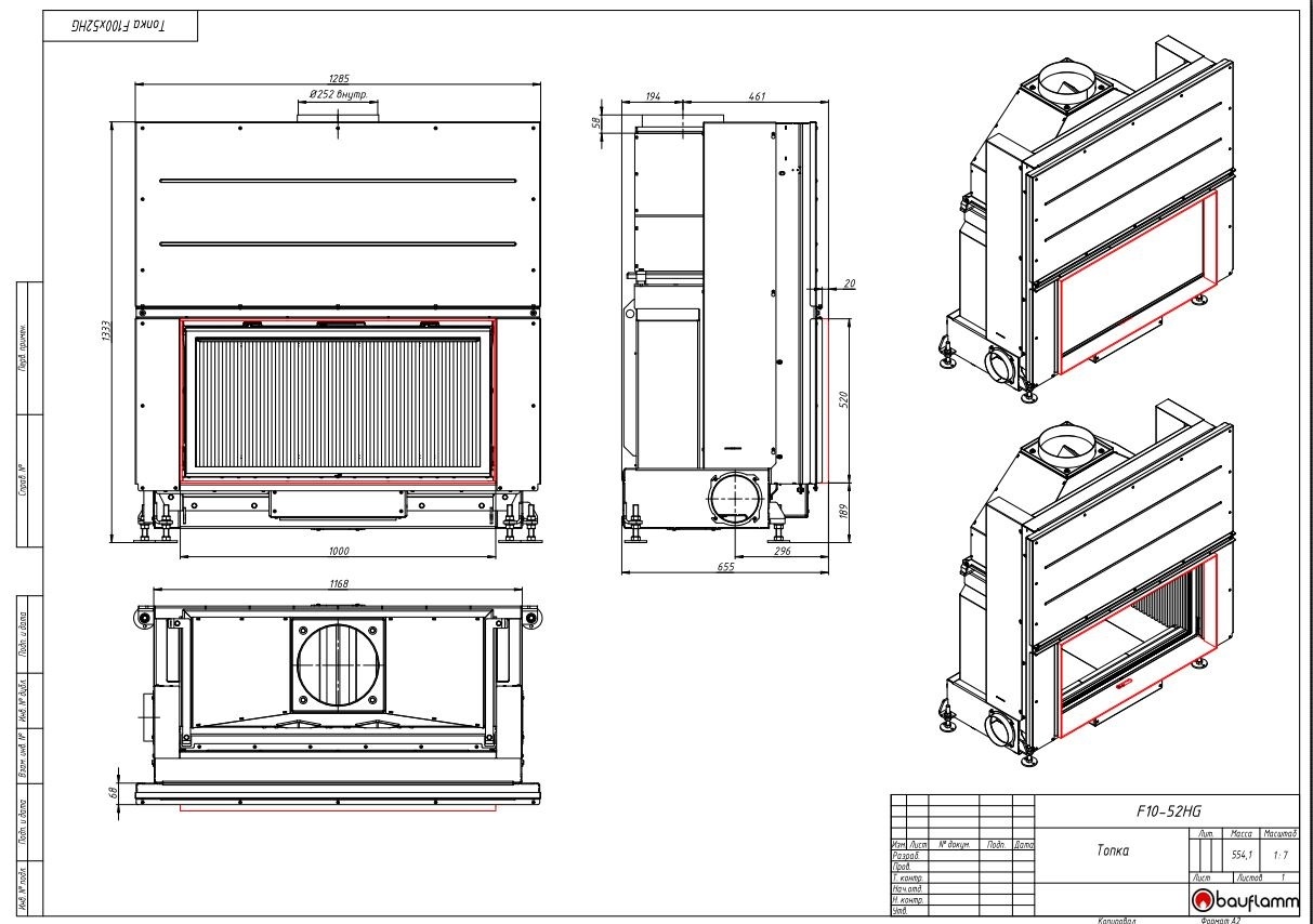 Каминная топка BAUFLAMM F100/52h glass + grid